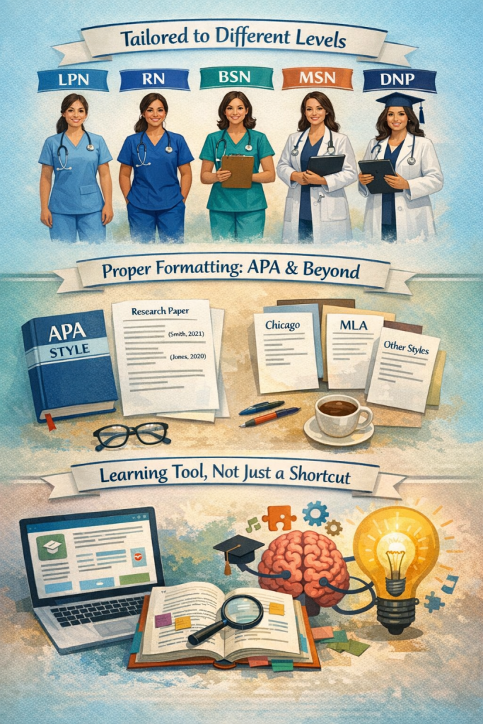 So instead of getting a generic essay that “sounds nice” but doesn’t fit nursing, you get a paper aligned with real nursing practice and education standards.